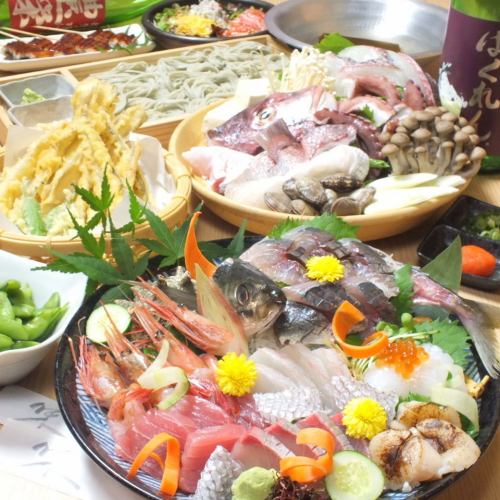 活魚、鹿児島県産の黒豚、へぎそばなど自慢の料理を堪能